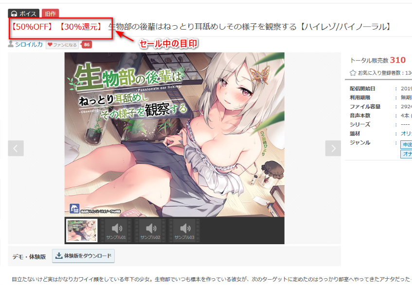 同人音声作品はもともと1000円前後の価格帯から購入できるリーズナブルなものです。